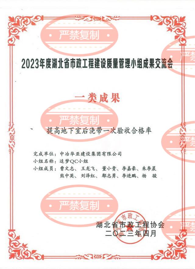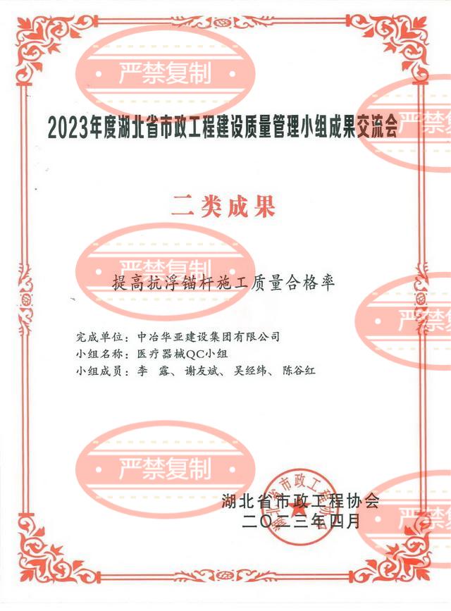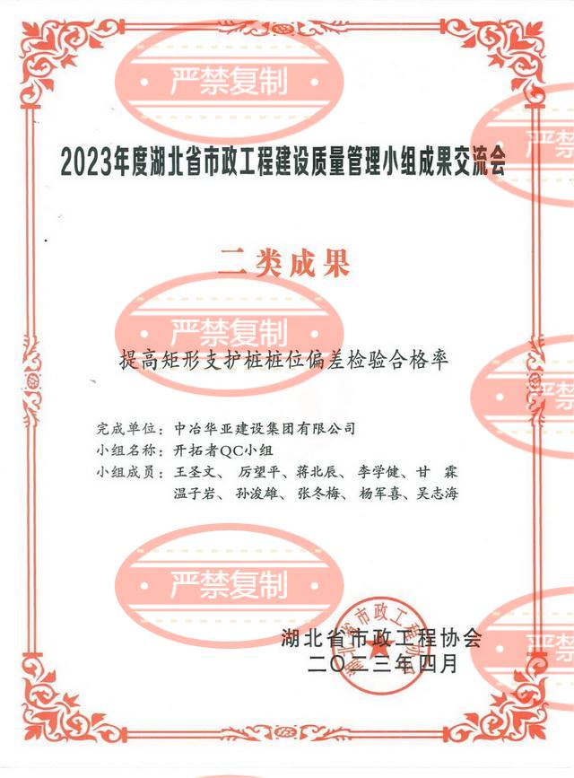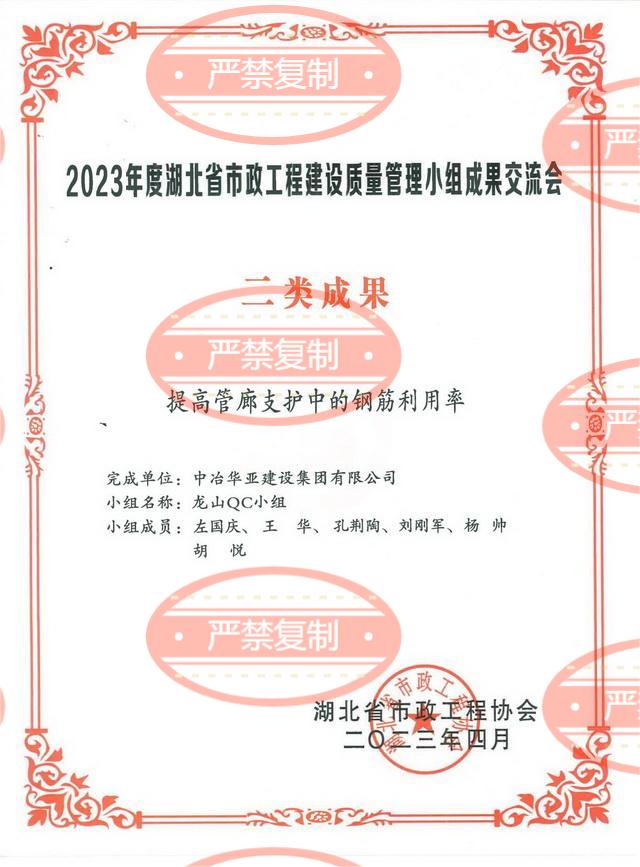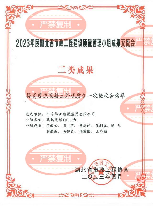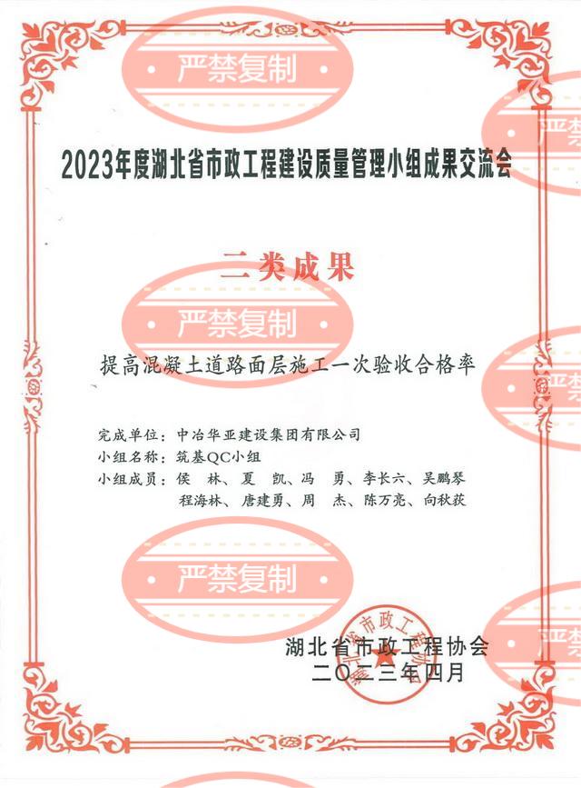 公司两项QC小组成果荣获2024年湖北省市政工程建设质量管理小组交流会一类成果奖